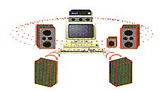 Surround ljud kommer att finnas på filmer. Det är Dolby Digital som har 6 separerade kanaler för ett levande ljud. På DVD kommer surround att vara standard. Som bilden till vänster visar. |