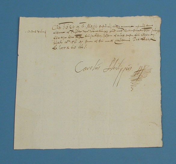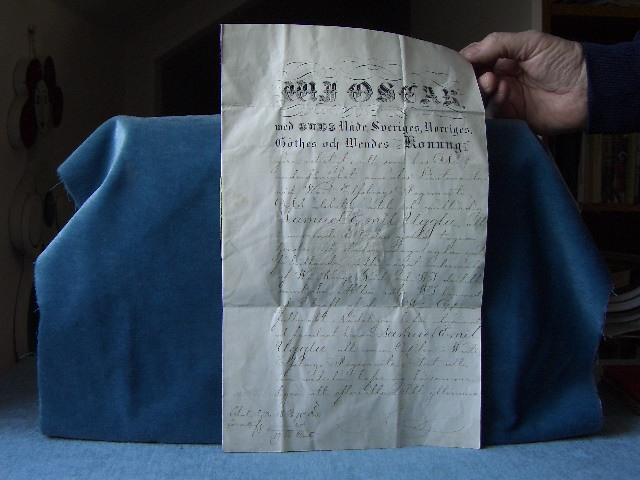 1 1/2 sida folio, delvis skadat genom bleckets genomslag ".