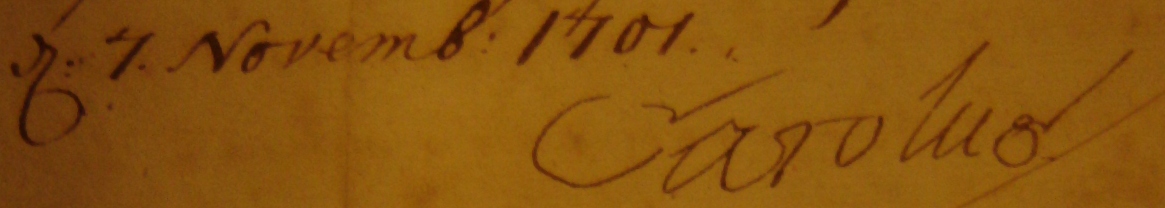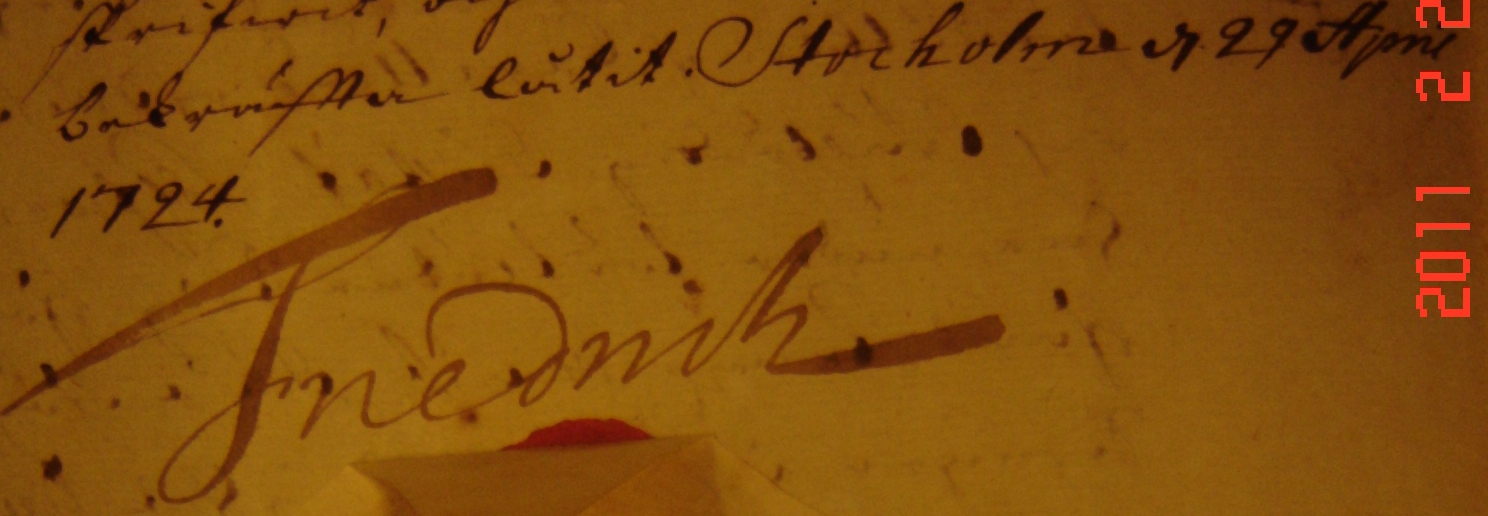 Ett antal fullmakter undertecknat av Karl XII (1701). Fredrik I (7 st.) och