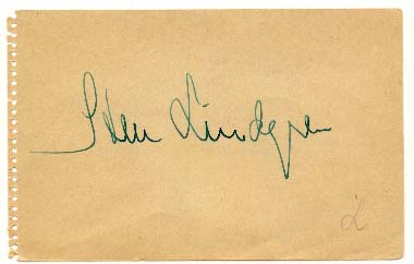 | Lindstedt, Pierre | ( - ) | Autograph | 19xx | - | Actor - Film | Swe | - | Son to Lindstedt, Carl-Gustaf |