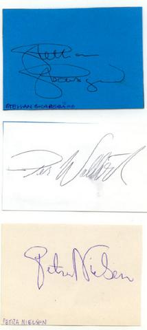 | (2000- ) | Hand signed autographs on a envelope. | Taken during Kramfors townparty in 2006. |